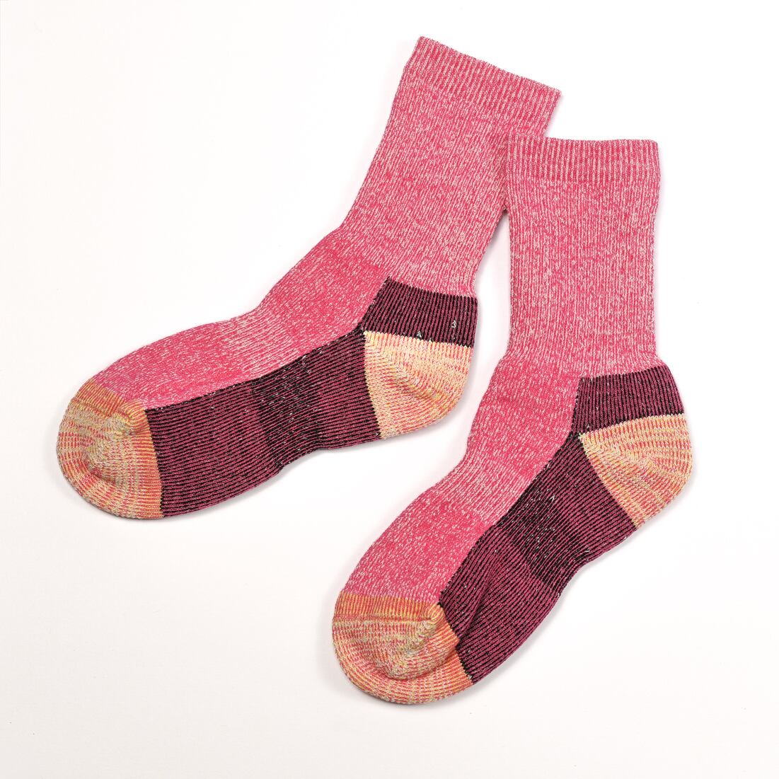 履き口から足の甲部分までは綿で編み立て、更に今回は、つま先、足底、踵(かかと)と、歩いていて一番負荷が掛かる部分に、陸上自衛隊などでも使用しているナイロンを使用。